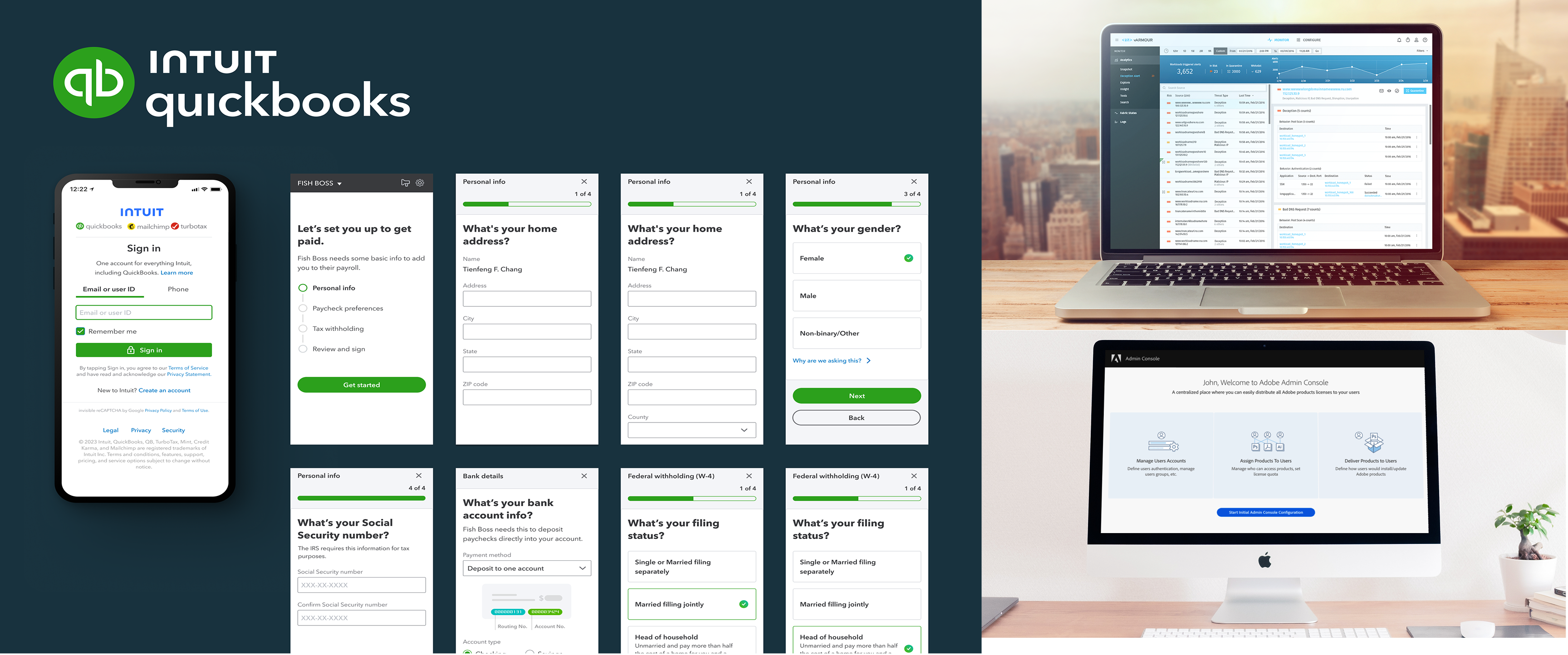 I’ve worked on both consumer and enterprise products like QuickBooks Payroll, Adobe admin console, and cybersecurity dashboard.